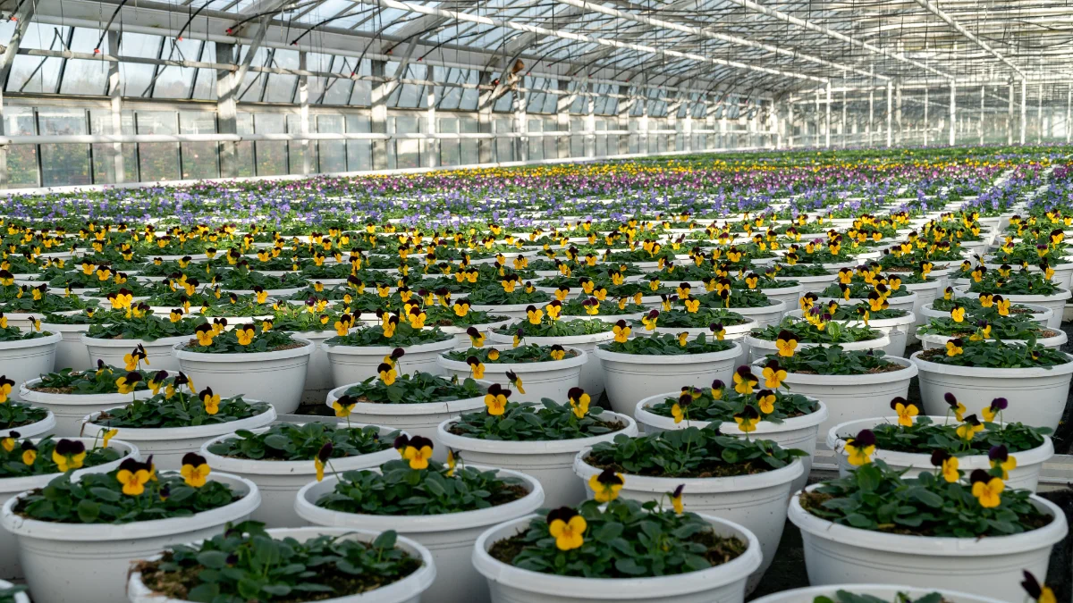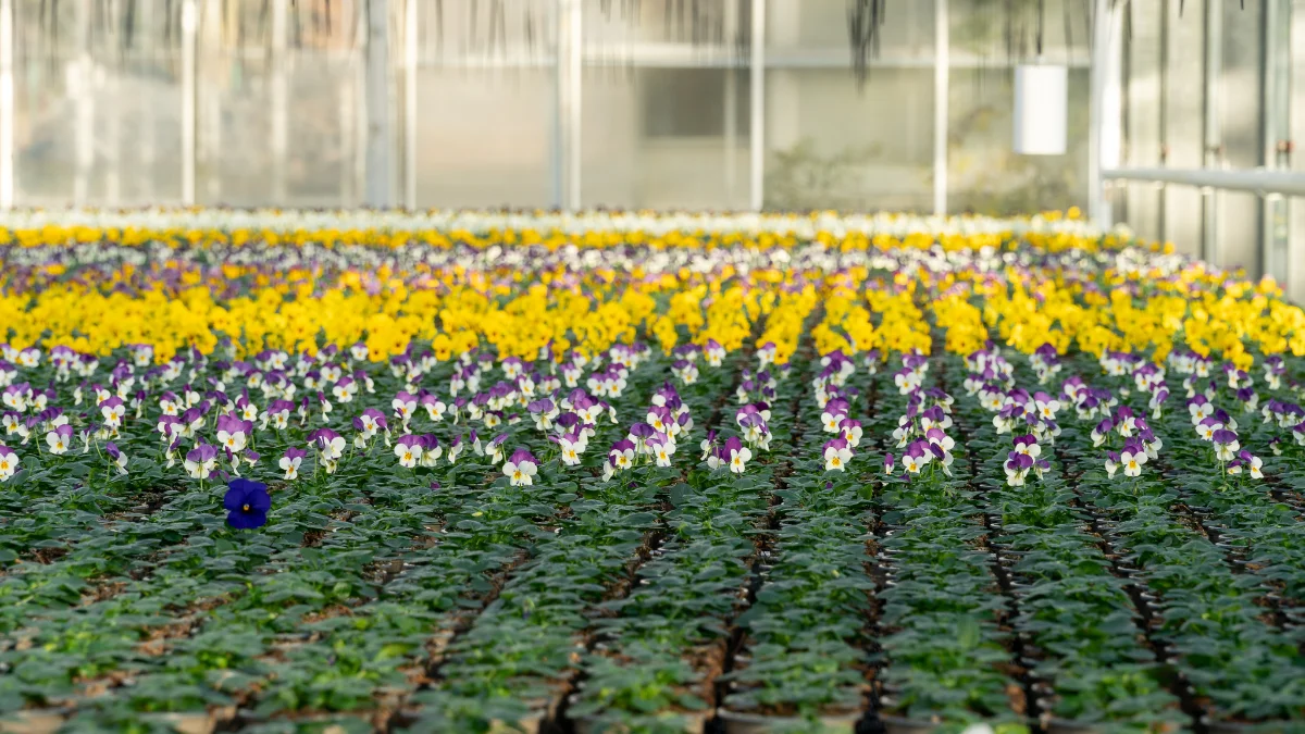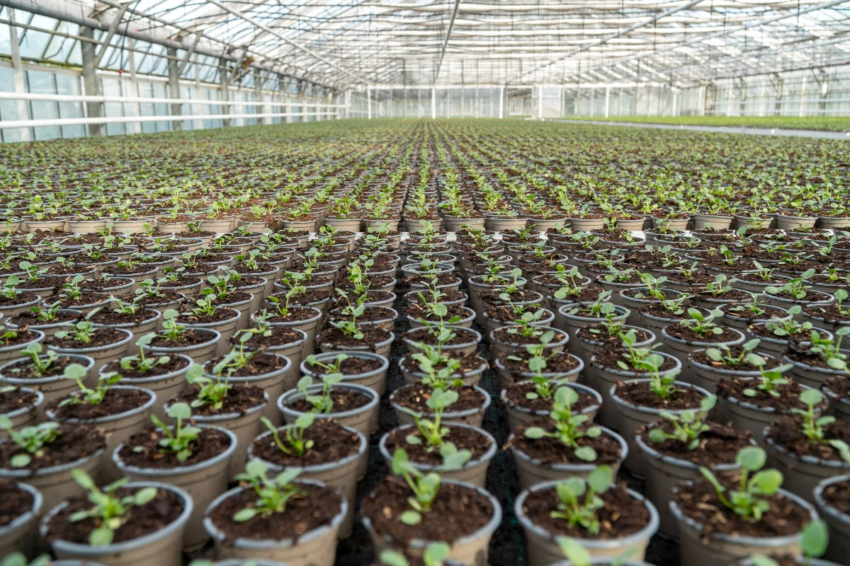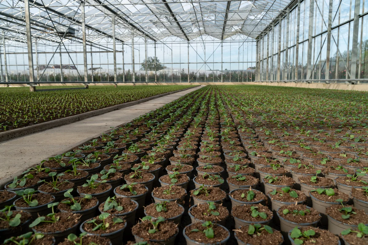 Wir produzieren in unserem Familienbetrieb an verschiedenen Standorten auf 14.000 m2 Gewächshausfläche und 4,5 Hektar Freilandfläche  1,4 Millionen Beet- und Balkonpflanzen sowie Freilandrosen.